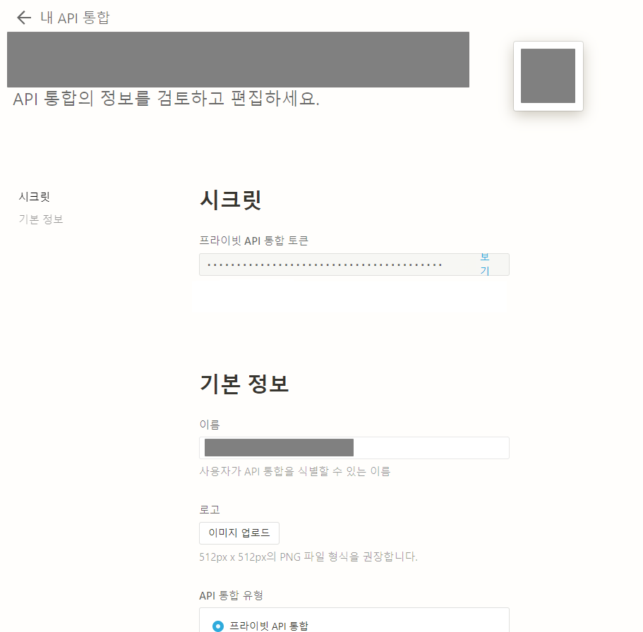프라이빗 API 통합 토큰으로 만들어졌습니다
