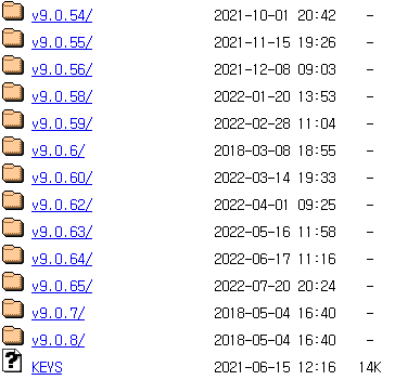 아래와 같이 9 버전의 마이너 버전 목록들이 나타납니다