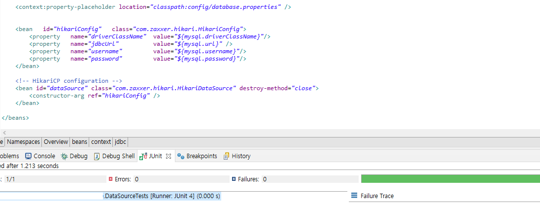 4. hikariCP가 참조 할 수 있도록 ref의 빈 이름을 DB 접속 정보 빈 이름과 동일하게 수정