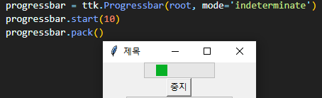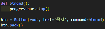 "중지"버튼을 클릭하면 btncmd() 함수가 실행되고 그 안의 progressbar.stop() 실행됩니다