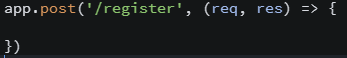 app.post('/register')의 코드 중에 성공하면 json 형식으로 "success: true"를 보내게 입력했습니다