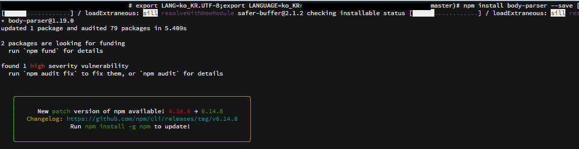 프로젝트 경로에 열린 cmd창에서 npm install body-parser --save 명령어를 입력합니다