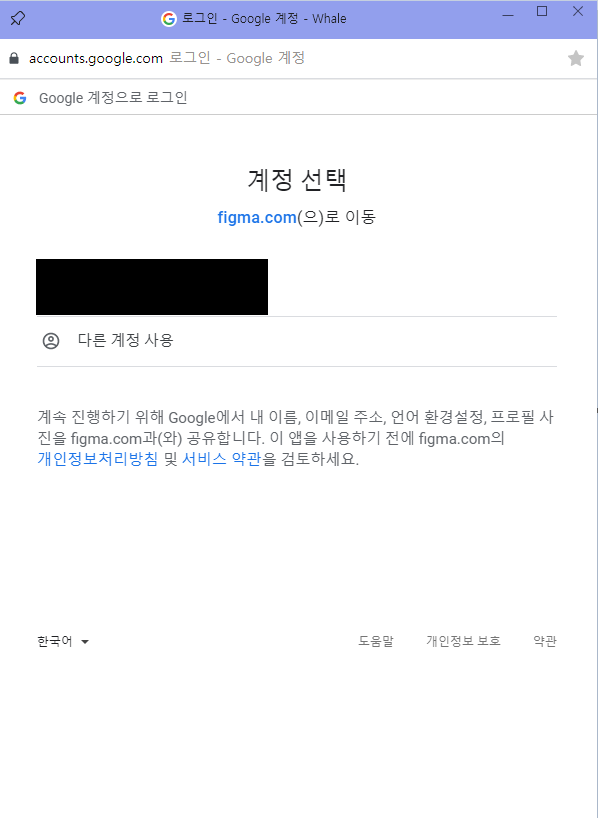 구글 계정을 로그인하고 위와 같이 계성 선택 팝업이 나옵니다