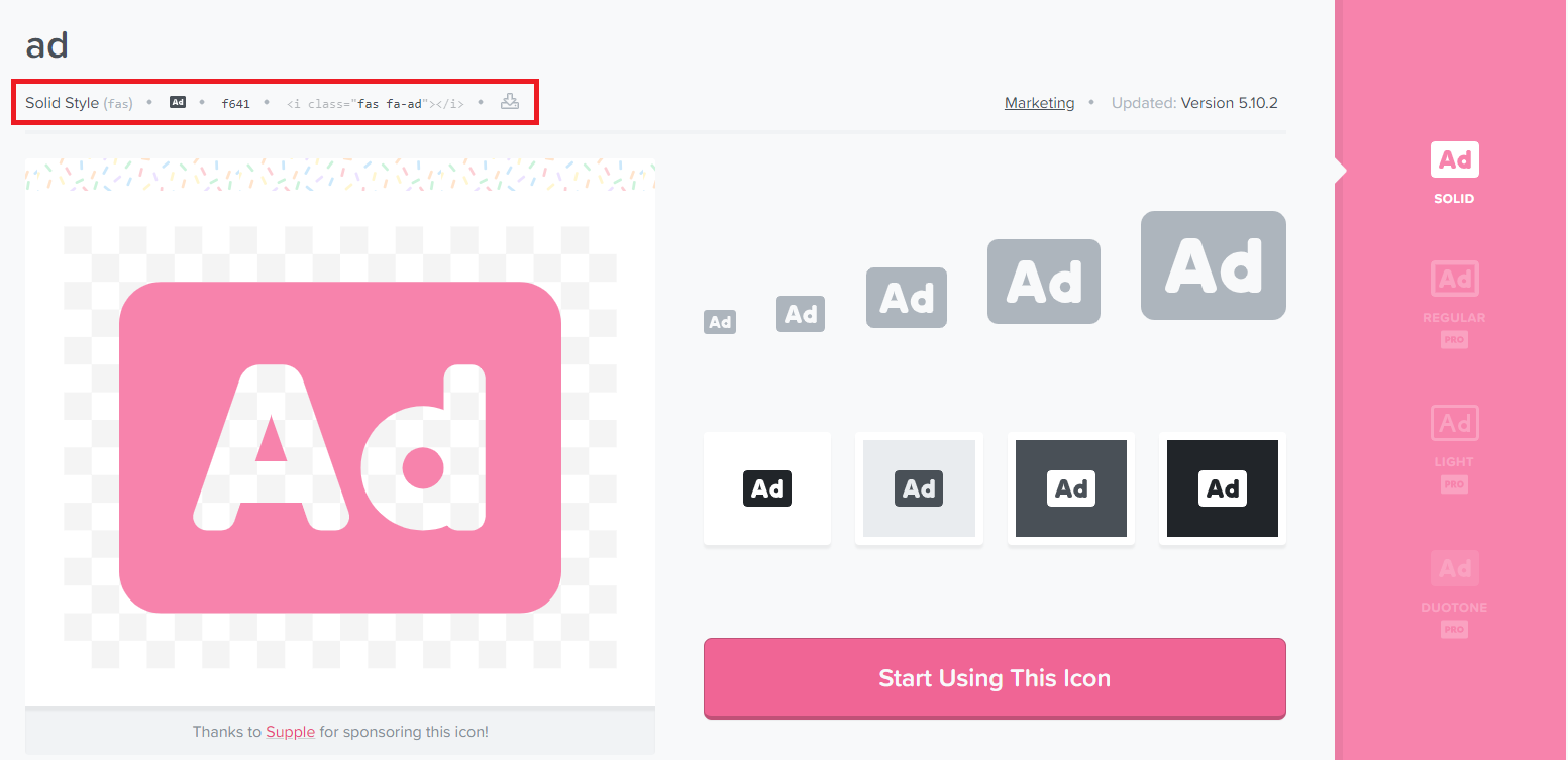 "<i class="fas fa-ad"></i>" 부분을 클릭하면 자동으로 복사되고 자신의 프로젝트에 붙여 넣기를 하면