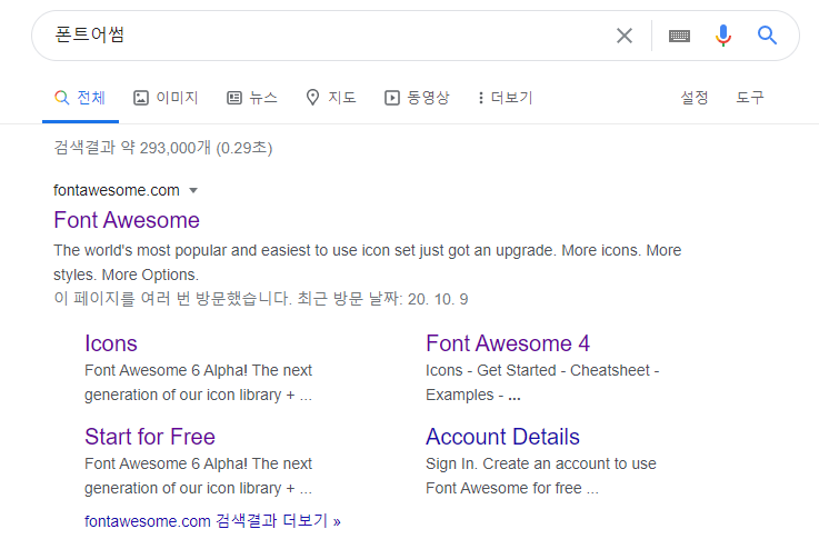 구글에 폰트 어썸을 검색하면 맨 처음 등장하는 사이트입니다