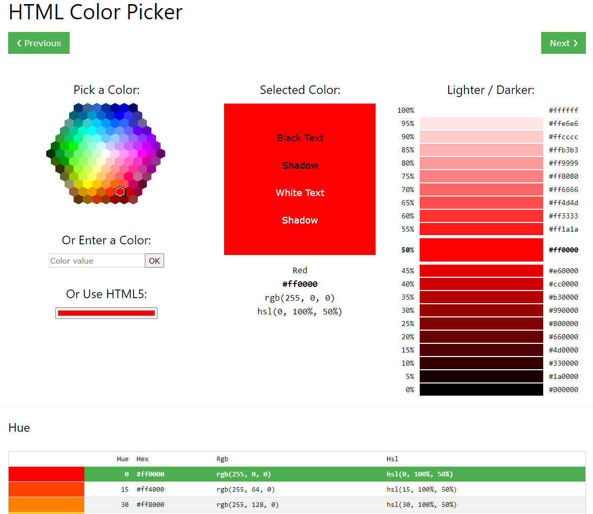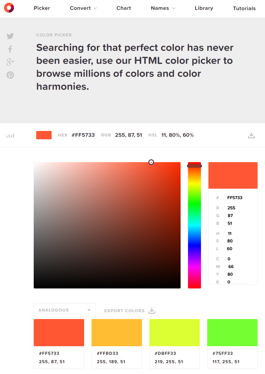Color picker 사이트는 같은 색상을 다양한 표현으로 할 수 있는 방법과