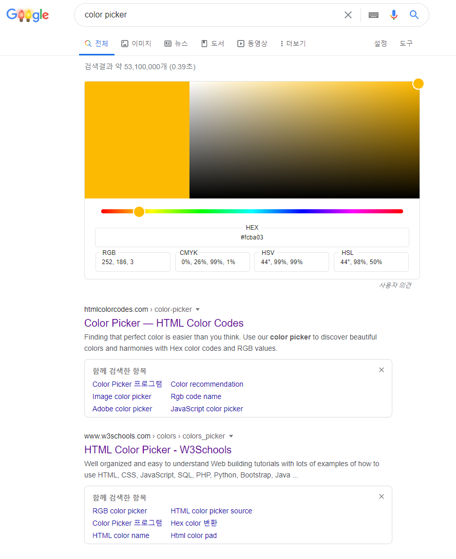 구글에서 color picker 검색하면 나오는 검색 결과에서 간편하게 사용 가능합니다