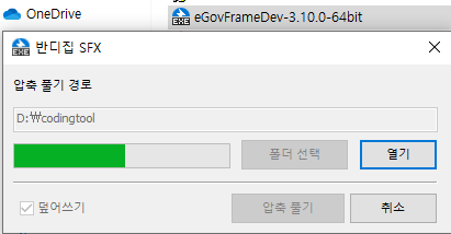 지정된 경로에 "eGovFrameDev-3.10.0-64bit" 이름으로 폴더가 생겼습니다.