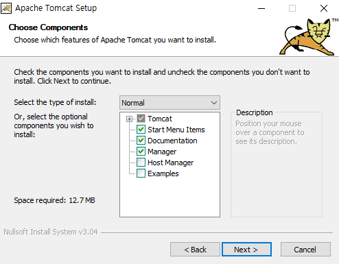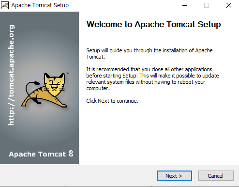 다운로드가 진행되고 설치가 완료되면 오른쪽 Apache Tomcat setup 화면이 나옵니다