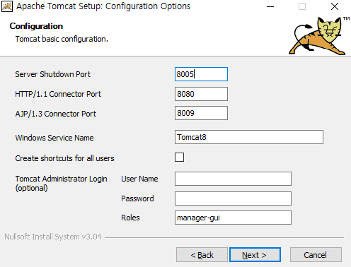 Server Shutdown Port를 8005로 변경한 후 "Next" 클릭합니다