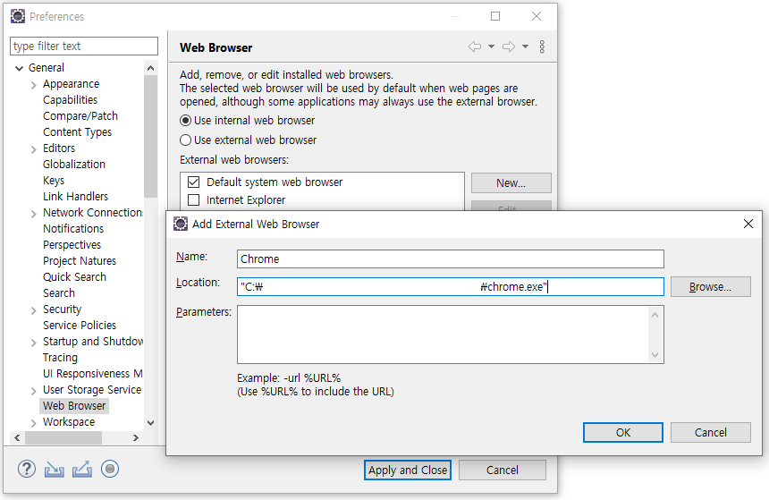 "Chrome" 적고 Browse... 클릭해서 크롬 다운로드 경로를 입력합니다