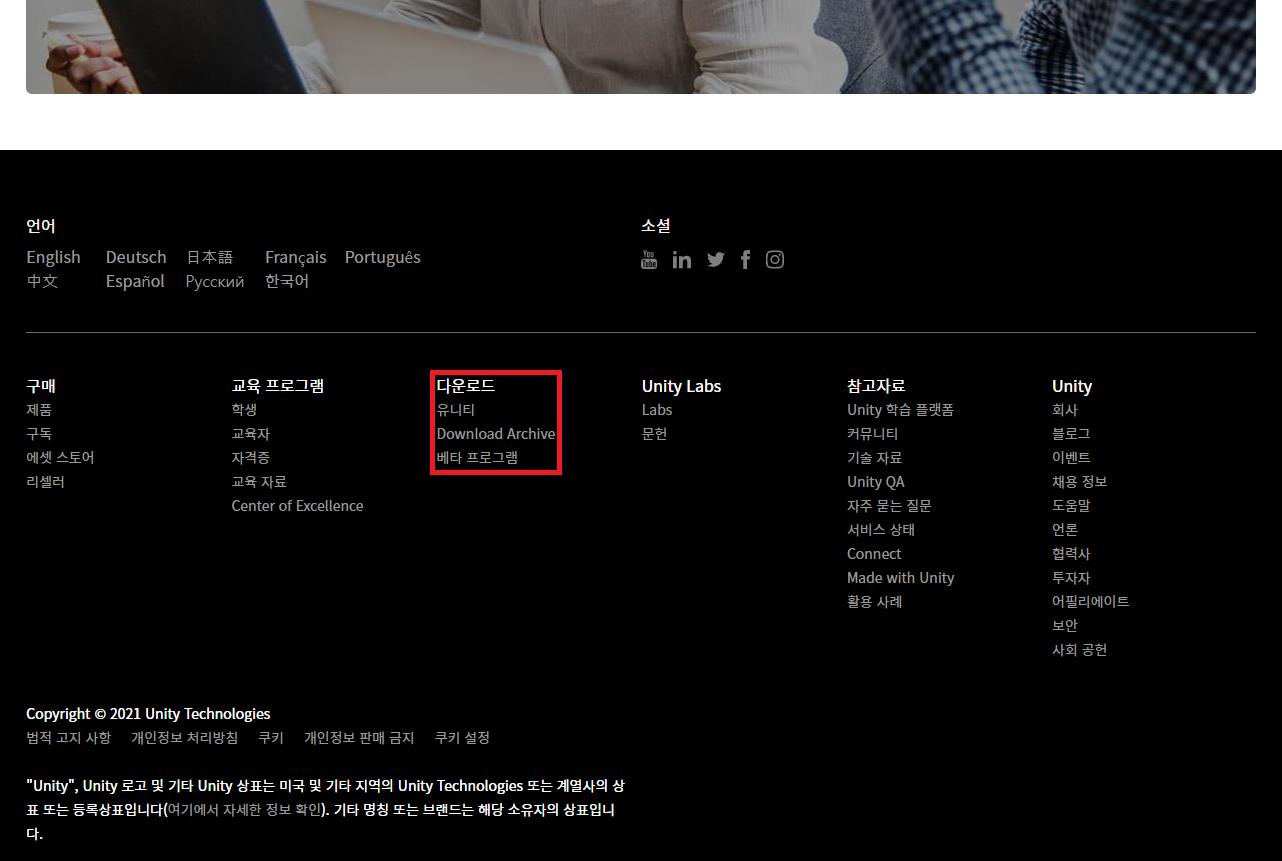 구글에서 "유니티" 혹은 "유니티 다운로드"를 검색합니다
