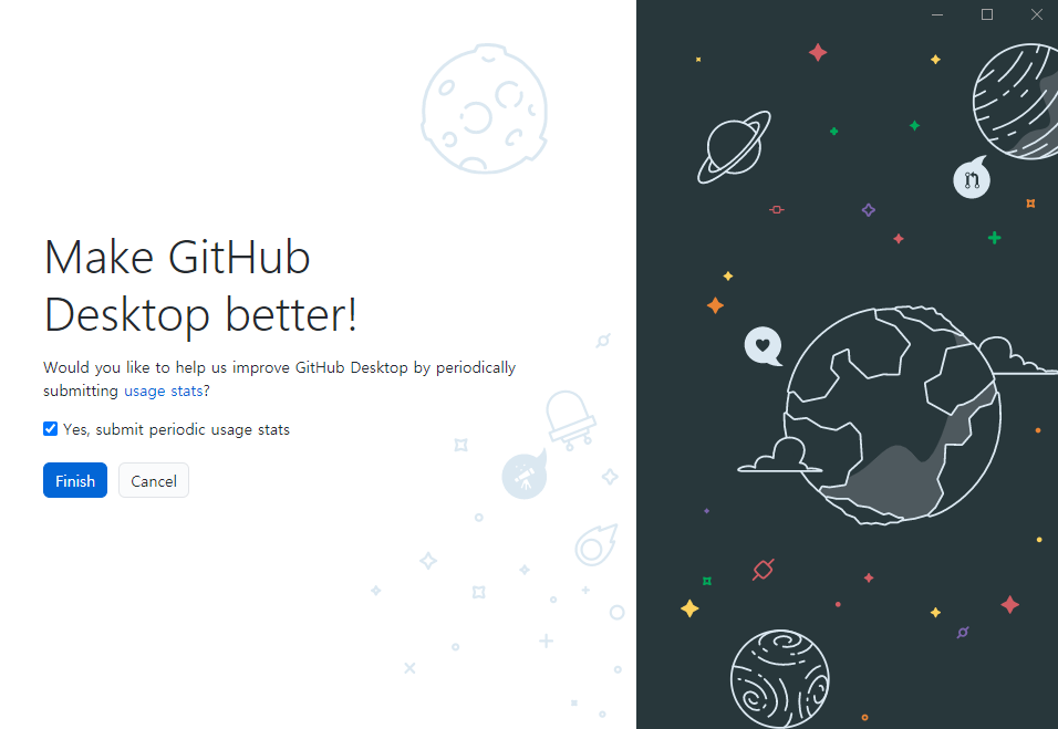 "GitHubDesktop.exe 열기" 버튼을 클릭합니다
