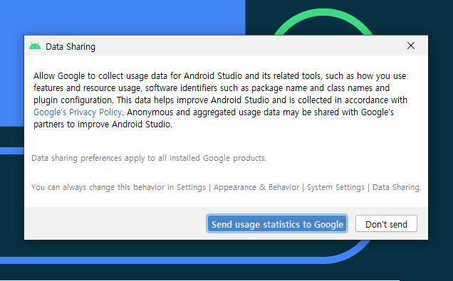 오류 같은 것을 구글에 보낼 것인지 묻는 것입니다