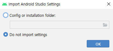 처음 안드로이드 스튜디오를 설치하고 실행하므로 "Do not import settings"를 유지한 채 "OK" 버튼을 클릭합니다