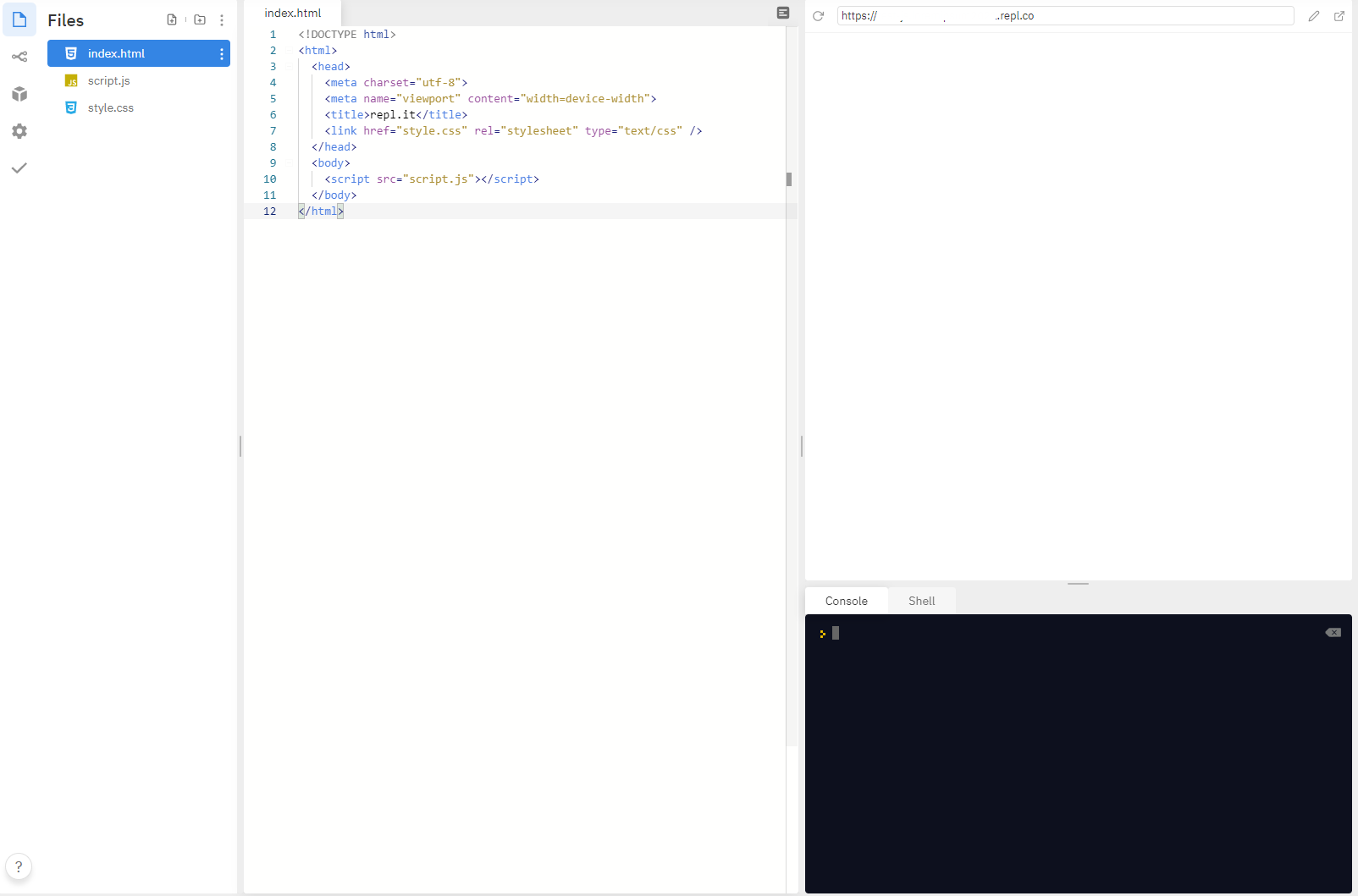 Create repl 버튼이 활성화됩니다 클릭합니다