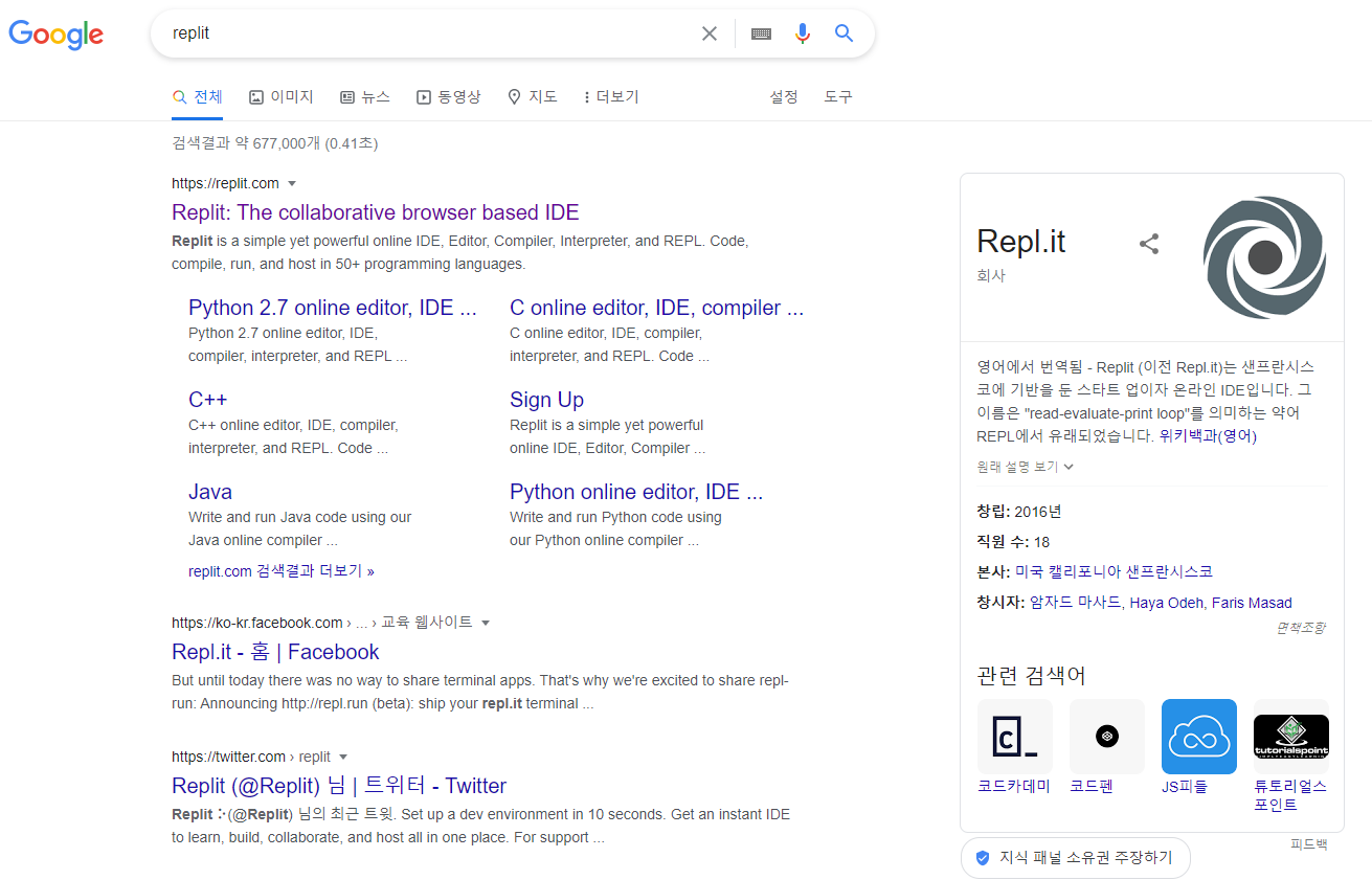 PC와 동일한 환경 설정을 해야 하는 번거로운 일이 있지만 Repl.it 사이트를 이용하면