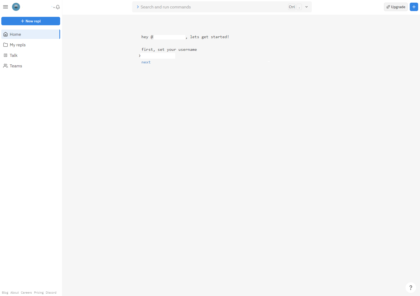 Name your repl에 사용할 프로젝트 이름을 입력합니다