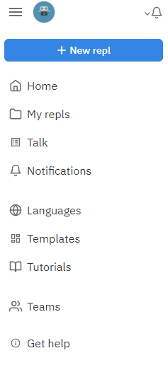 왼쪽 메뉴에서 New repl 버튼을 클릭합니다