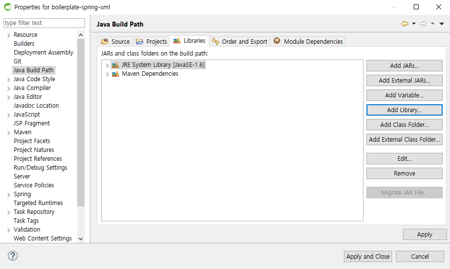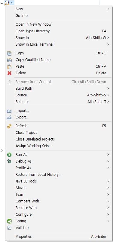 프로젝트 우클릭 후 Properties 클릭합니다