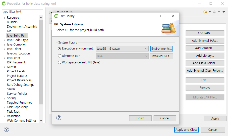 Java Build Path에서 워크스페이스 java 설정으로 변경