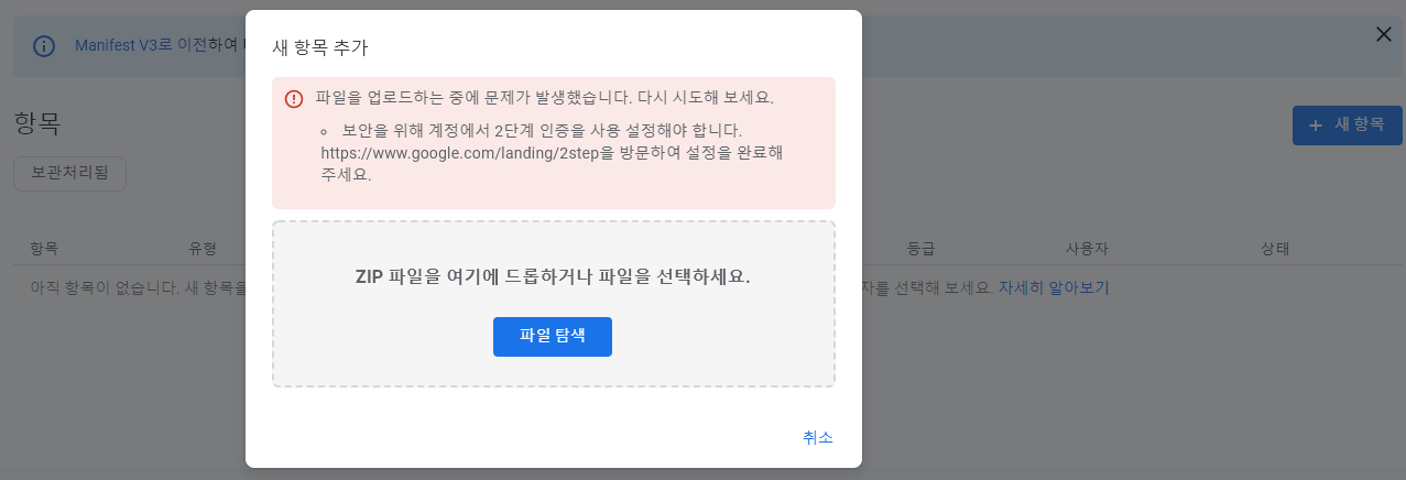 2단계 인증이 안 될 경우 등록이 안되고 아래와 같이 경고창이 나옵니다