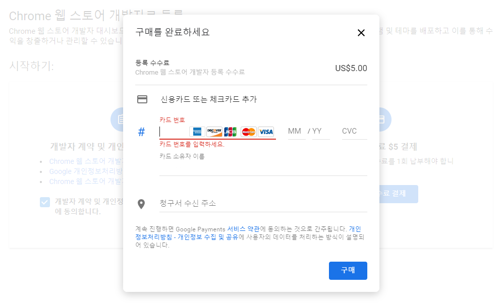 웹 스토어 개발자 등록 과정입니다