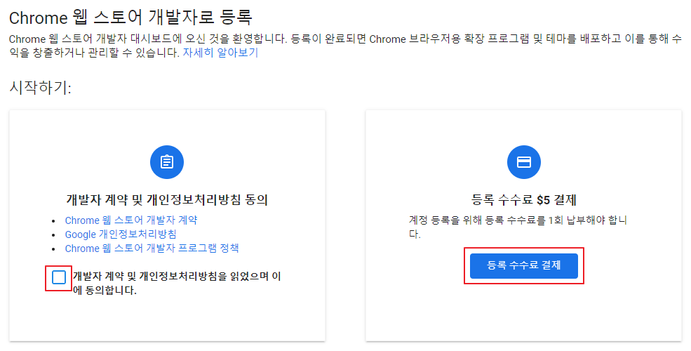 개발자 계약 및 개인정보처리방침을 읽었으며 이에 동의합니다 체크박스를 체크합니다