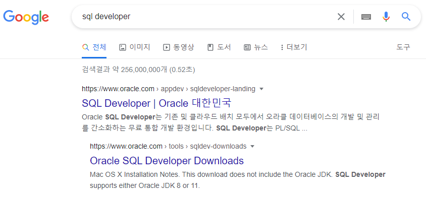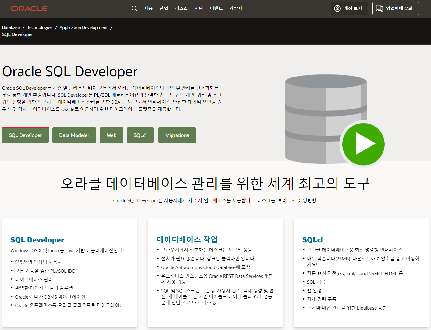 첫 번째 목록을 클릭해서 "Oracle(오라클)" 사이트로 접속합니다