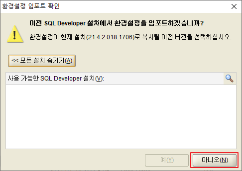 로딩 창이 나오고 "환경설정 임포트 확인" 창이 나옵니다