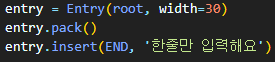 Text는 줄 바꿈이 가능했지만 Entry는 줄바꿈 없이 한 줄로 사용합니다