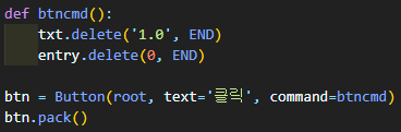 "클릭" 이름의 버튼을 만들고 command에 btncmd 함수를 만들어줍니다